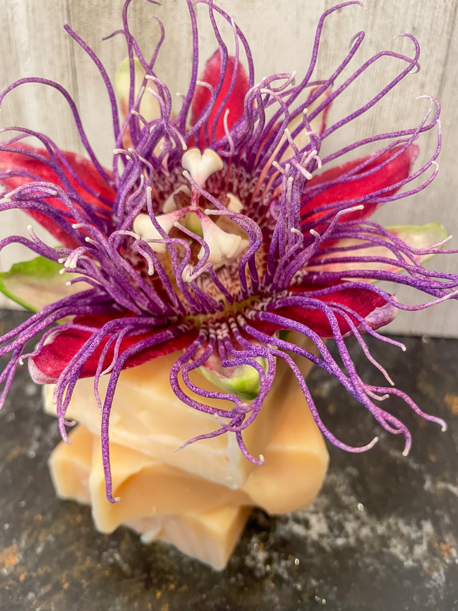 Our Honey Passionflower Soap is an artisanal soap, handcrafted with organic and all-natural ingredients. Springtime in a bar, this soap smells like fresh flowers and sweet fruit, while producing a luxurious lather that leaves skin soft and refreshed.