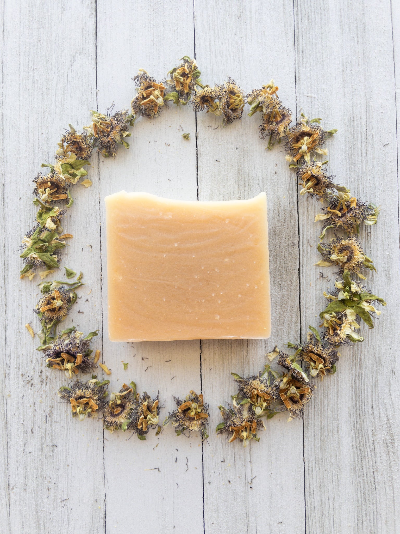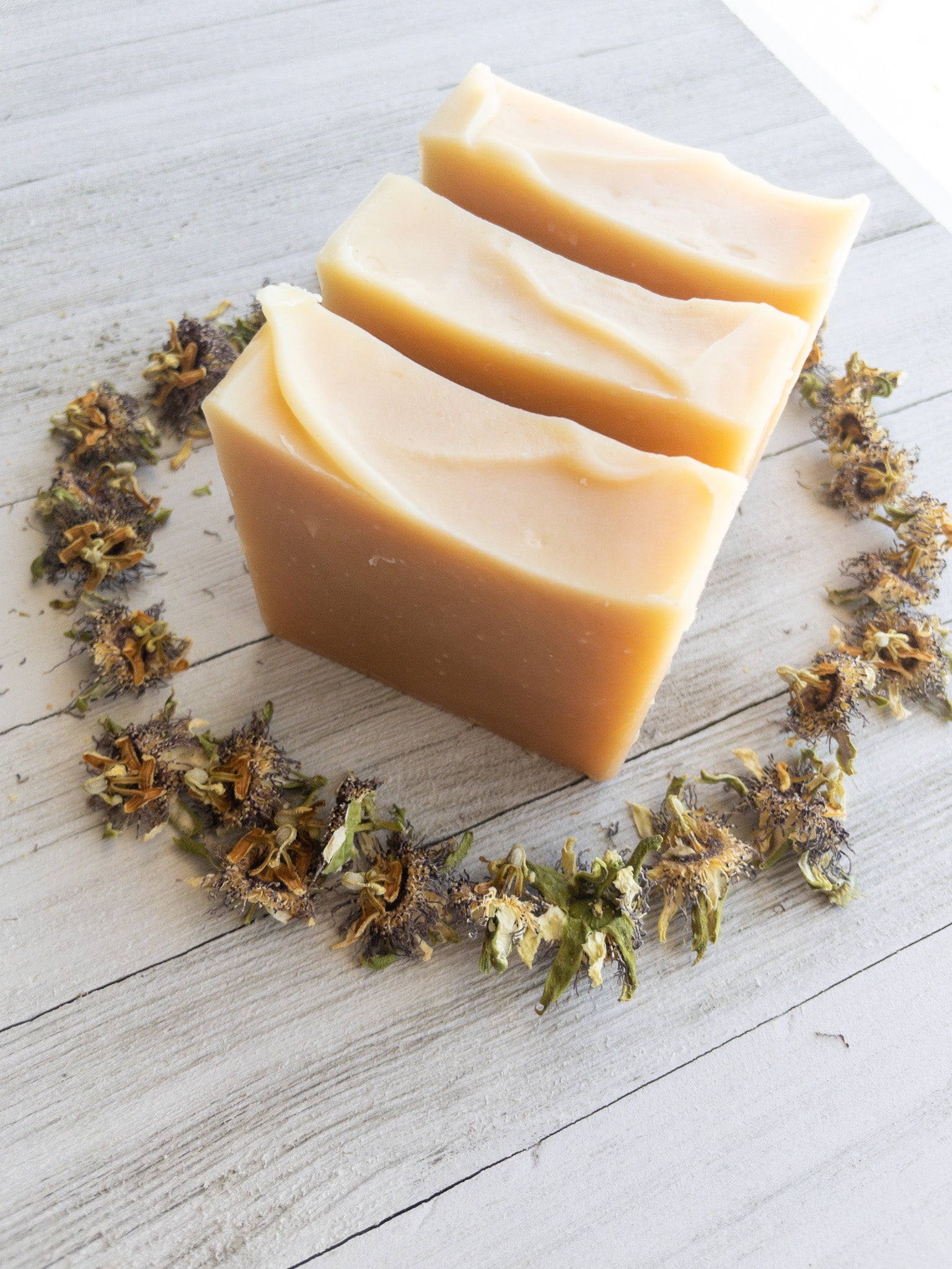 Ingredients: Purified water, saponified oils of: organic olive oil, organic & fair trade coconut oil, organic shea butter, organic pecan oil, organic castor oil, locally sourced beeswax, organic cocoa butter, locally sourced & organically grown dried passionflower, locally sourced honey, organic lavandin essential oil, lemongrass essential oil